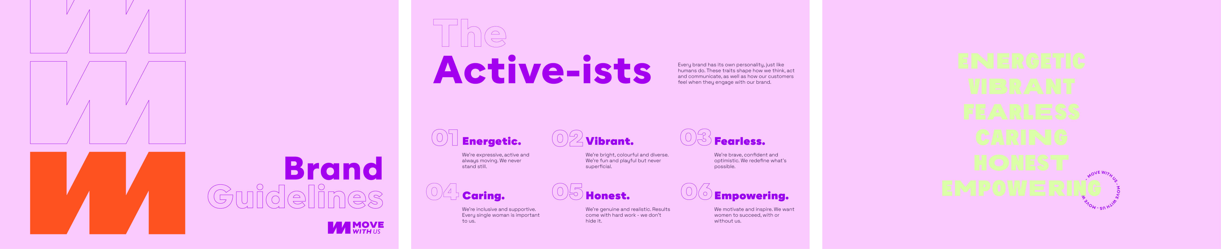 Move With Us is a brand defined by action and who use fitness as a catalyst to change and improve people’s lives. They’re constantly moving forward and challenging themselves - and inspire their community to do the same. So we coined a new term - “active-ism” - to help us articulate these overlapping themes. When we call Move With Us ‘The Active-ists’, we’re redefining activism within the context of fitness, drawing attention to the brand’s energy, vitality and greater purpose as well as its community of passionate advocates.